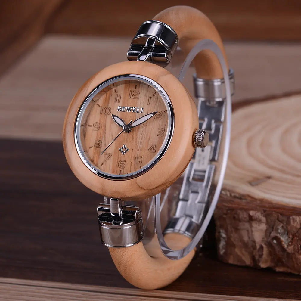 Fashionable Waterproof Wooden Watch with Bracelet for Women