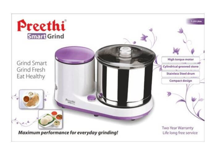 Preethi Power Grind is a quick and smart pick for grinding wet spices and batters, the Preethi power grinder makes your task effortless. Its cylindrically grooved grinding stones ensure precise and effective grinding. Also, equipped with a high-torque motor, this appliance is capable of operating at speed of up to 900 RPM for fast results. Furthermore, this wet grinder makes use of cool-touch technology to keep the batter cool while grinding. With this device, you can enjoy the softest idlis, fluffy vadas and crispy dosas and what’s even better; use this device to knead dough as well.