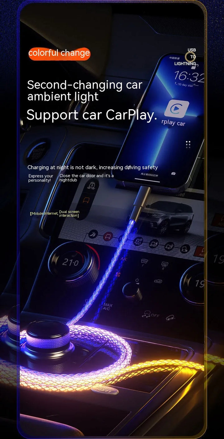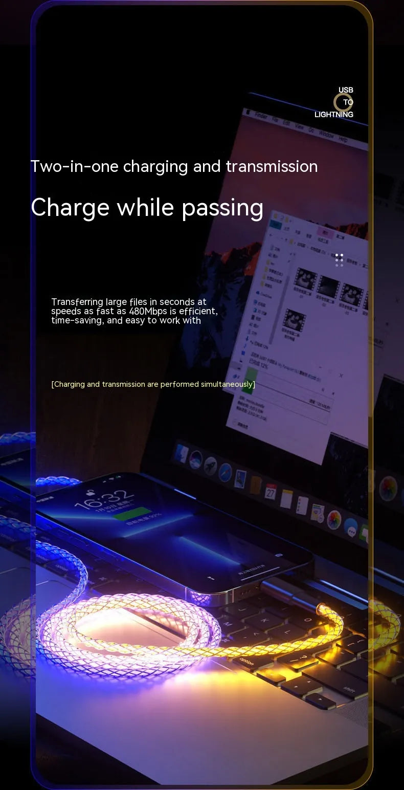 This isn't just any charging cable; it's a captivating blend of function and style. Featuring mesmerizing RGB lighting effects, this cable adds a touch of magic to your charging experience.