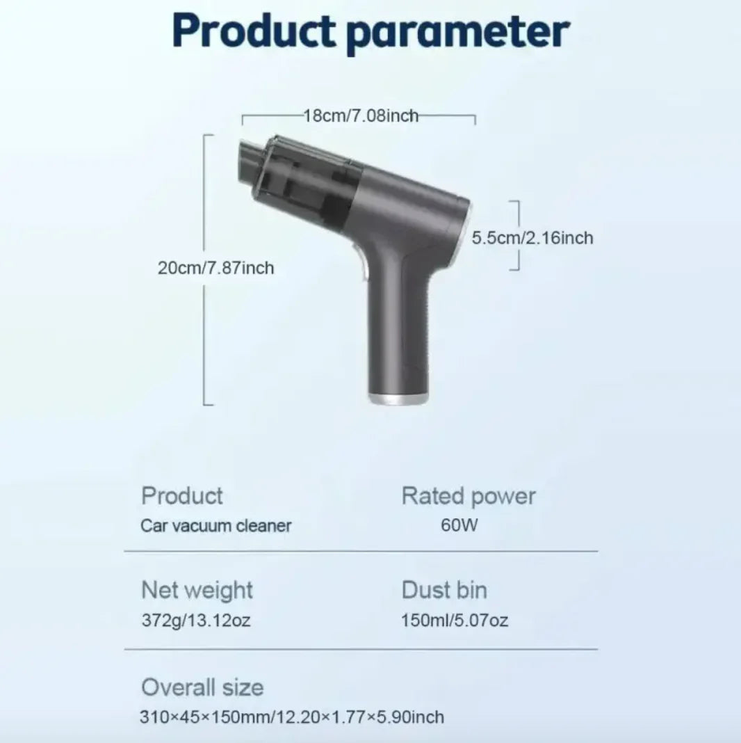 - Comprehensive Mite Removal: Take your car hygiene to the next level. Our vacuum cleaner not only tackles surface messes but also eliminatesĀ dust mitesĀ andĀ bacteriaĀ from seats, carpets, and air vents, promoting a healthier driving environment.