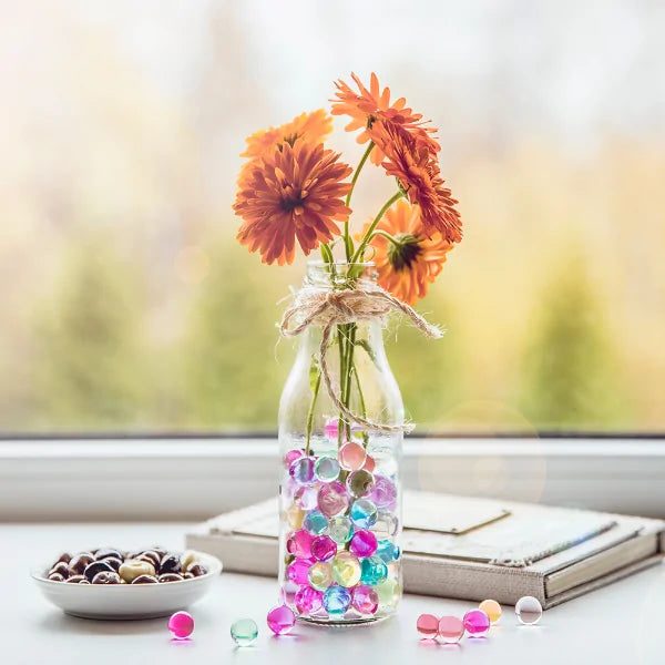 Vibrant Colors: The hydrogel beads come in a range of stunning colors, from radiant blues to vibrant pinks, adding a pop of color to any space.