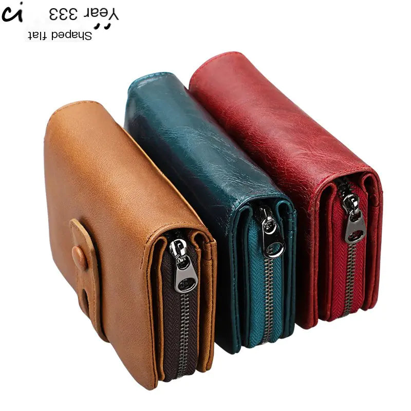 Men's Cowhide Short Retro Wallet with Coin Pocket