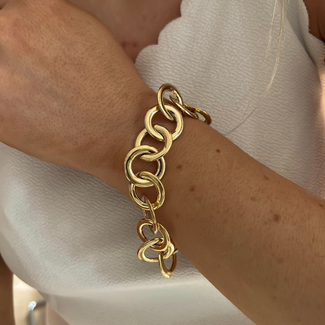 Unser ANELLI Armband vereint Ringe in 2 cm Durchmesser und ist dick vergoldet, um das ewige Leben, dieses Prachtexemplars zu gewährleisten.