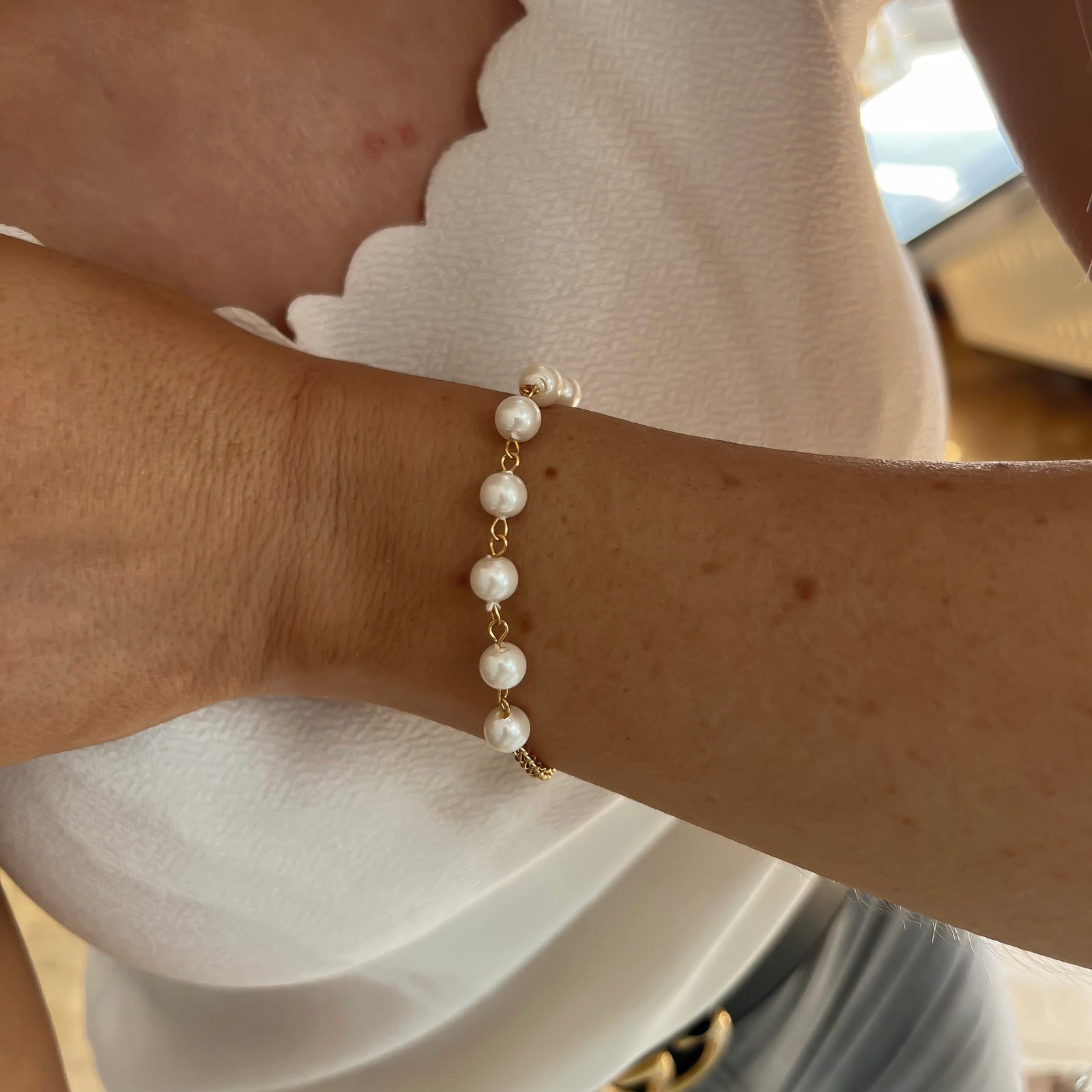 Auf der Suche nach dem perfekten Schmuckstück? Das FEMMINILE Armband aus Edelstahl ist ein echter Blickfang und dank Knebelverschluss sicher am Handgelenk. Es ist wasserfest und halbseitig mit Perlen aufgereiht - ein stylishes Must-Have für jede Fashionista!
