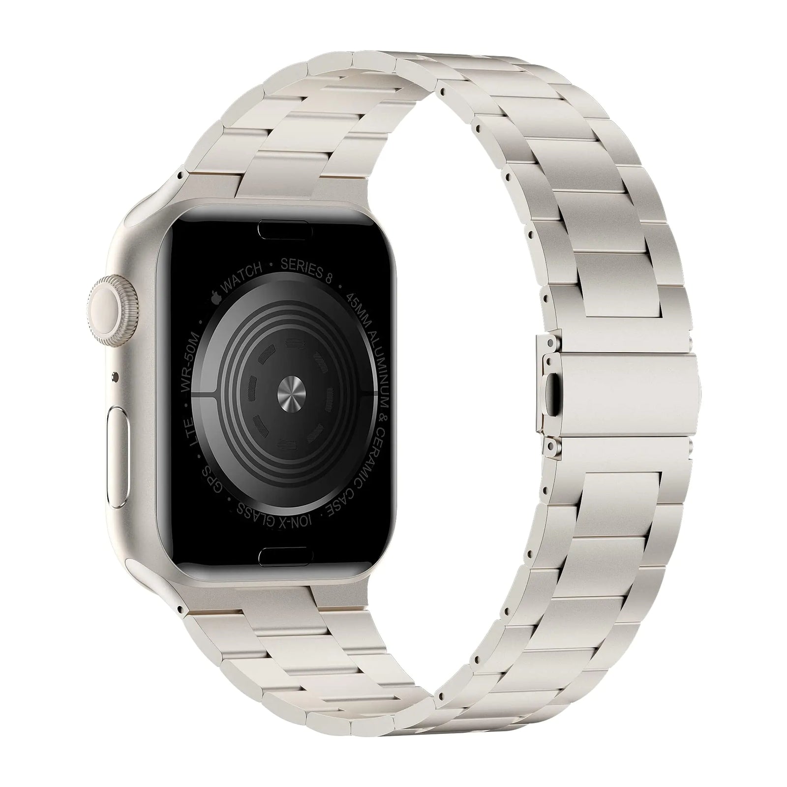 Transform your Apple Watch into a fashion statement with an ultra-thin stainless steel strap. This elegant band adds a touch of sophistication to any outfit, ensuring you look your best for every occasion.