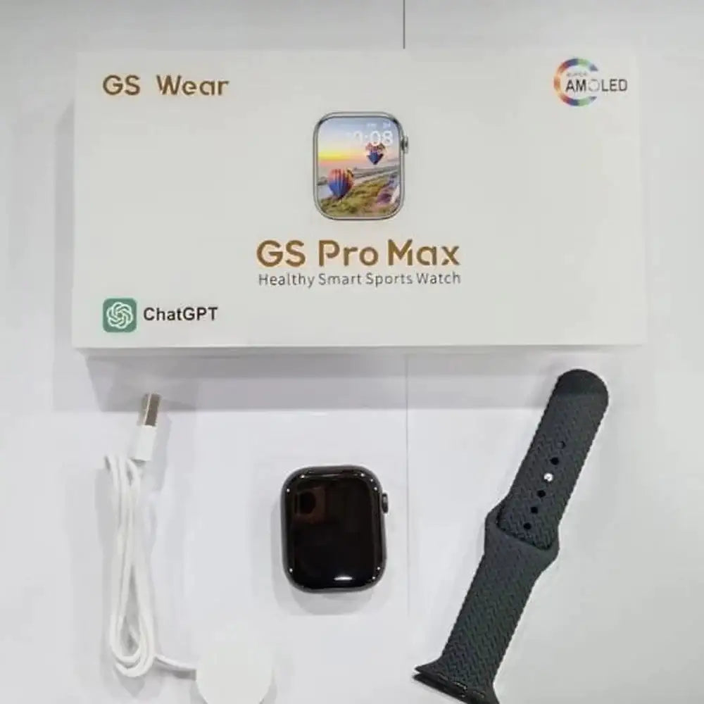 Introducing the Smartwatch GS Pro Max AMOLED, the pinnacle of innovation and style in wearable technology. Crafted with precision and packed with cutting-edge features, this sleek timepiece seamlessly blends fun and professionalism, catering to your every need on the go.