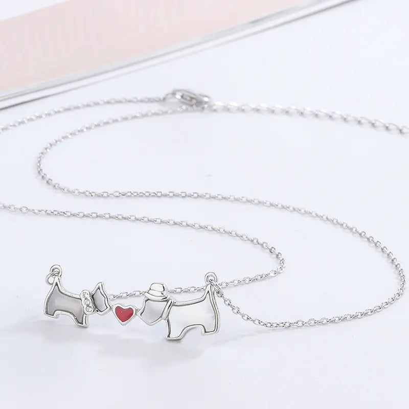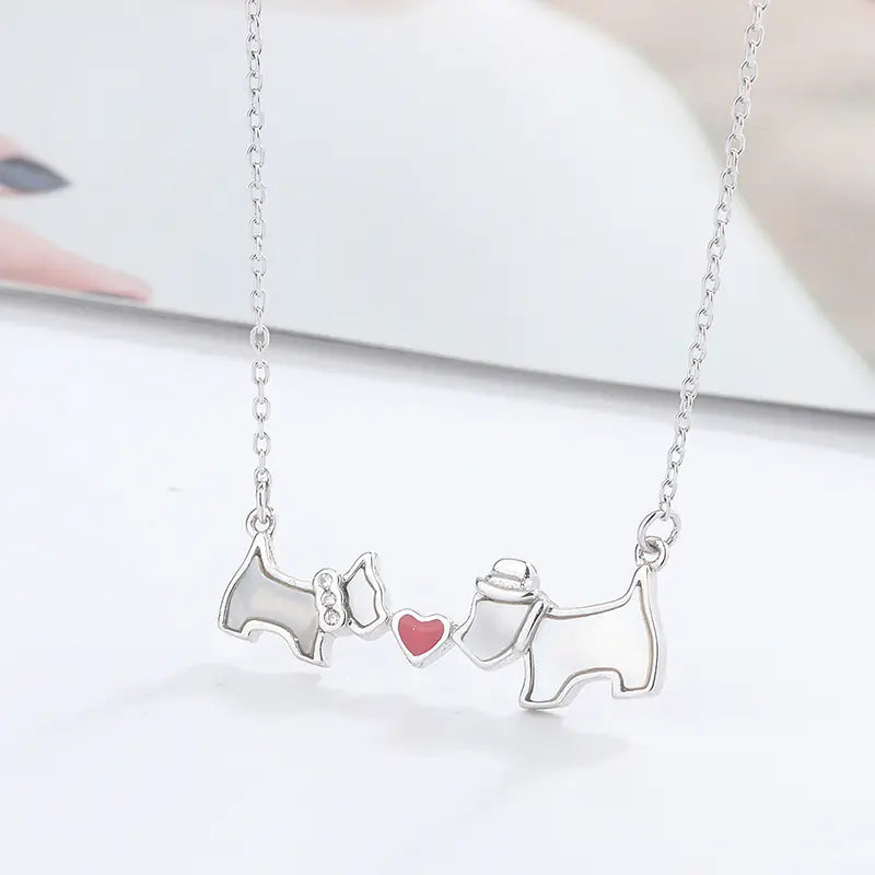 Heart Necklace with White Mother-of-Pearl and Dog Design
