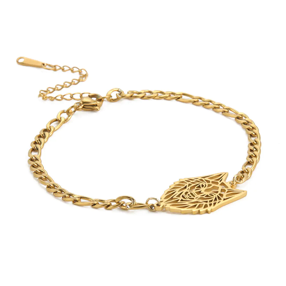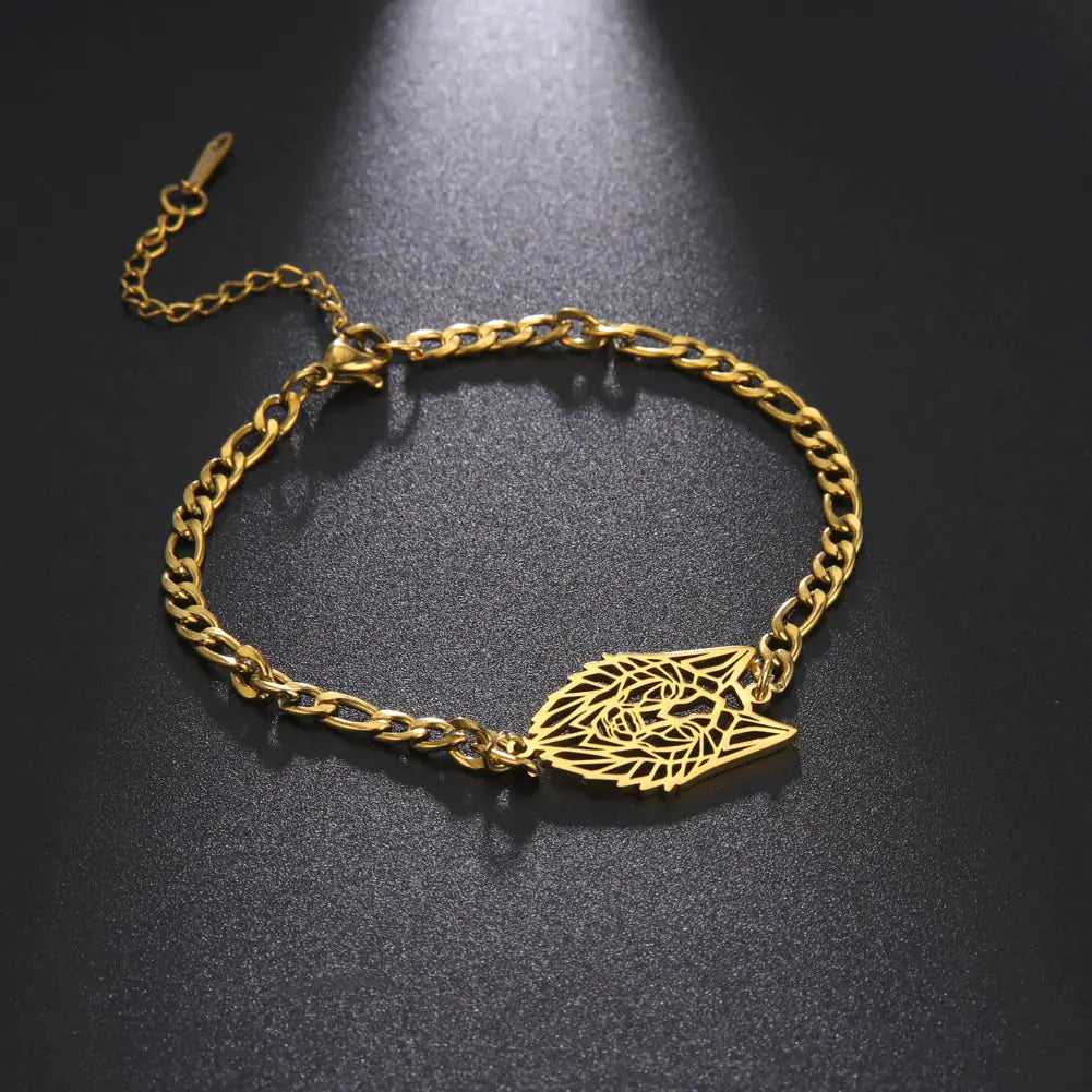 Hollow Wolf Head Pendant with Figaro Chain Bracelet