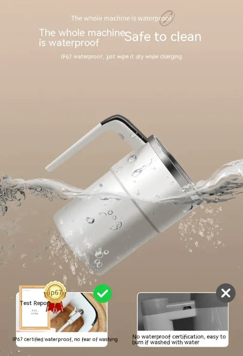 Coffee cup with an automatic magnetic stirring function. Using magnetic force, it effortlessly mixes your coffee, tea, or other beverages with a simple press of a button. Perfect for busy mornings or office use, this electric coffee cup ensures your drink is evenly mixed without the need for a spoon. The sleek, modern design makes it a great addition to any kitchen or workspace.