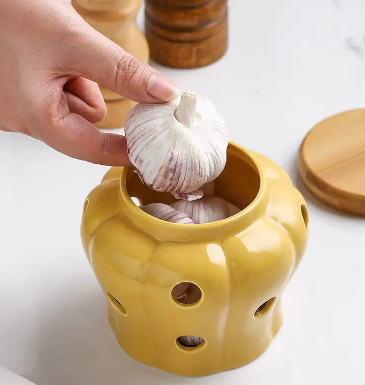 Werten Sie Ihre Küche mit einem eleganten Knoblauchbehälter aus Porzellan auf