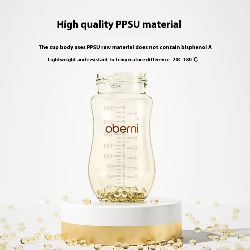 Dieses vielseitige Babyflaschenset hat ein Fassungsvermögen von 240 ml und ist in verschiedenen ansprechenden Farben erhältlich, darunter Rosa, Hellsilber, Himmelblau und Kuhfruchtgrün. Jede Flasche ist praktisch und benutzerfreundlich gestaltet und mit einem ergonomischen Griff für bequemes Halten während der Fütterung ausgestattet.