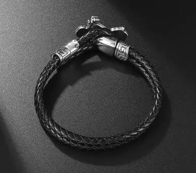 Men's Stainless Steel Leather Motorcycle Bracelet