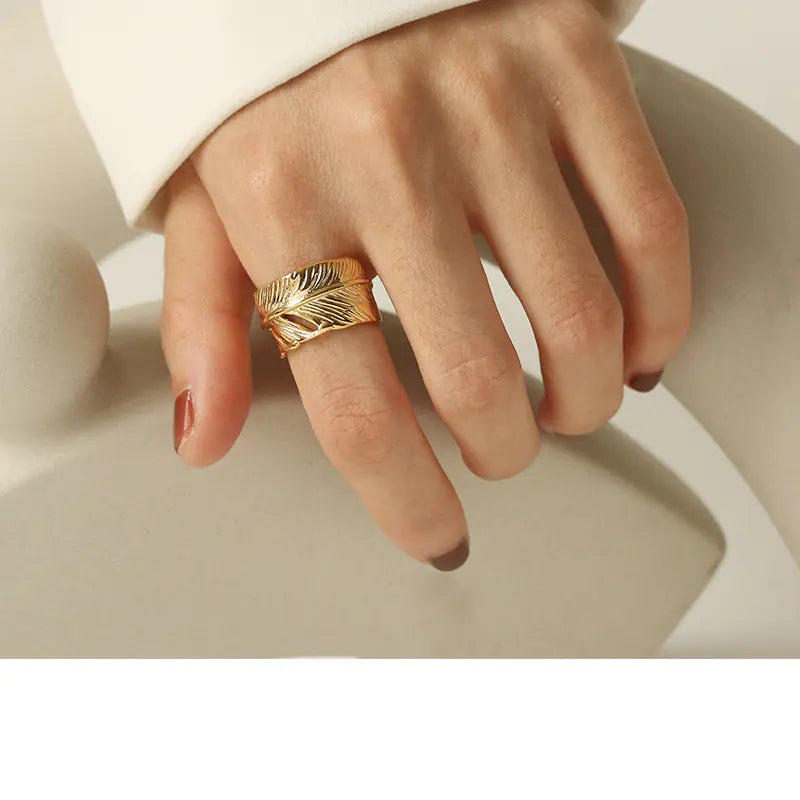 Gold-Plated Leaf Feather Ring by Takahashi Goro