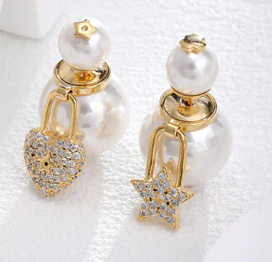 Asymmetrical Star Heart Earrings with Double-Sided Pearls