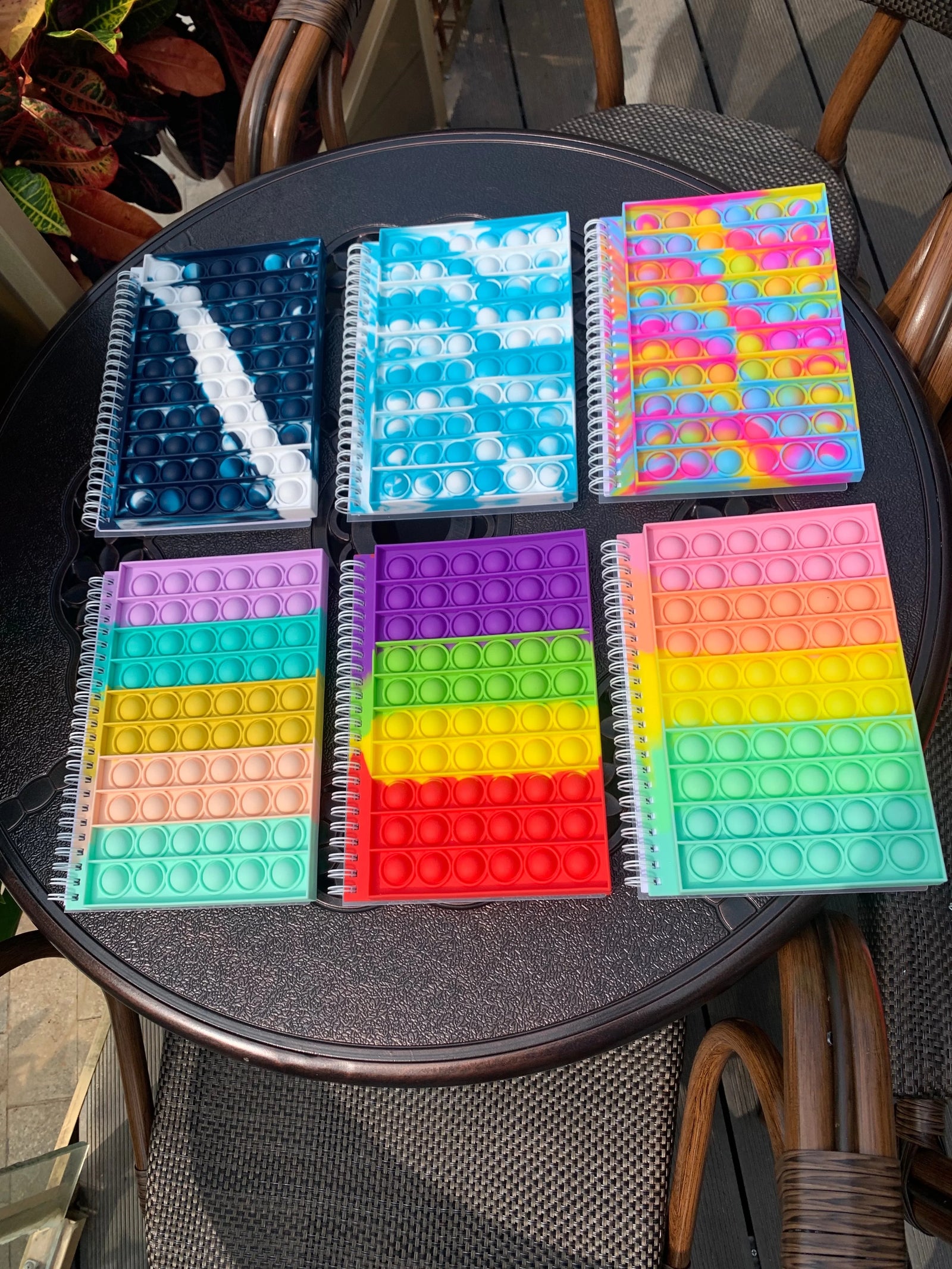 Genießen Sie die Doppelfunktionalität eines Federmäppchens und Notizbuchs mit integriertem Pop Its Push Bubble Fidget Toys, perfekt zum Stressabbau unterwegs.