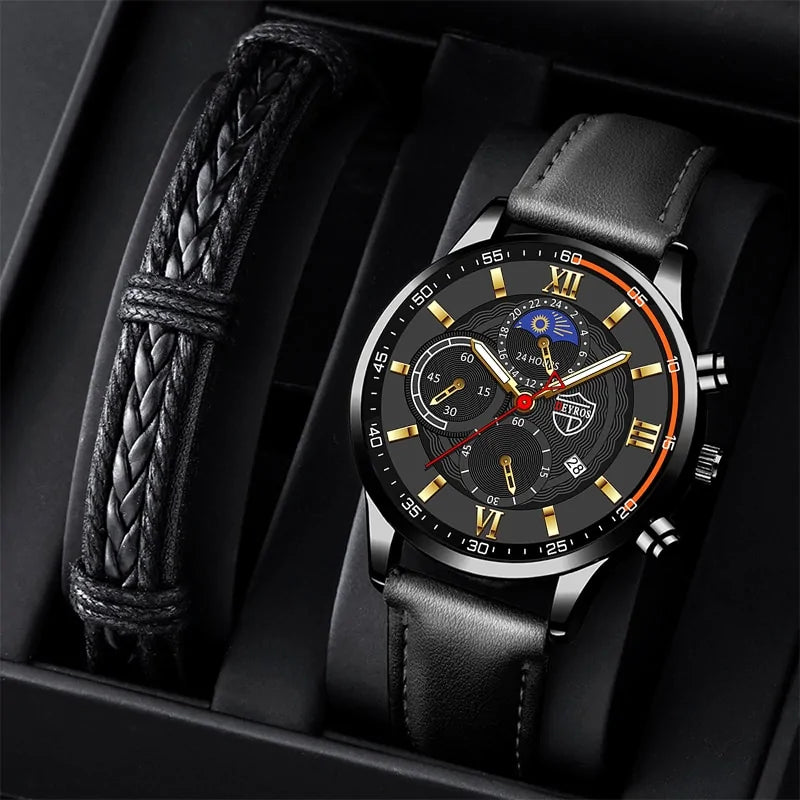 Genießen Sie den ganzen Tag Komfort mit unserer Casual-Lederuhr für Herren. Sie ist für den ganztägigen Gebrauch konzipiert und verfügt über ein weiches Lederarmband, das sich Ihrem Handgelenk anpasst und so von morgendlichen Meetings bis hin zu abendlichen Ausflügen einen bequemen Sitz gewährleistet.