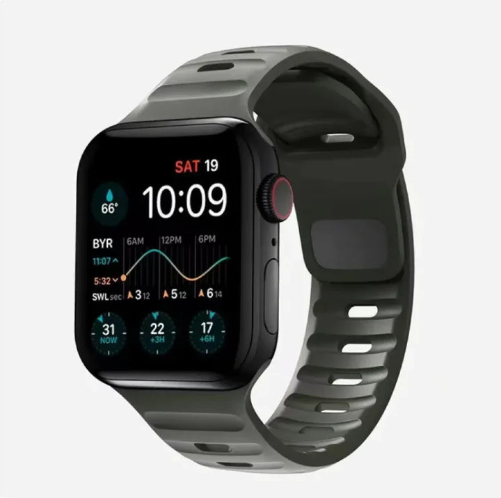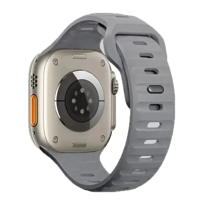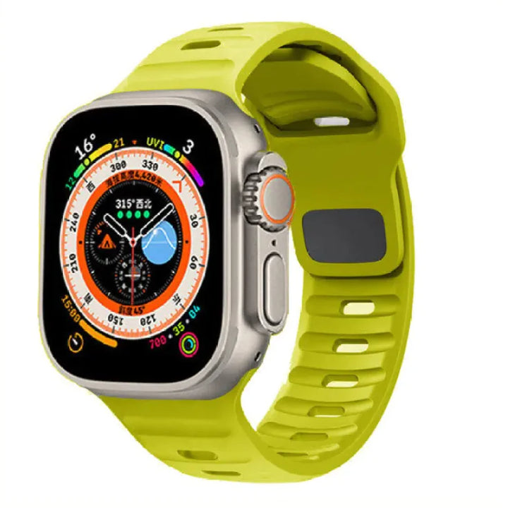 Rüsten Sie Ihre Apple Watch mit diesem weichen Silikon-Sportarmband auf, das für Komfort und Haltbarkeit konzipiert wurde. Es ist perfekt kompatibel mit der Apple Watch Ultra, Serie 5, 6, 7, 8 und 9 und passt in eine Reihe von Größen von 41 mm bis 49 mm. Das weiche, flexible Silikonmaterial ist leicht, atmungsaktiv und ideal sowohl für den Alltag als auch für intensive Trainingseinheiten.